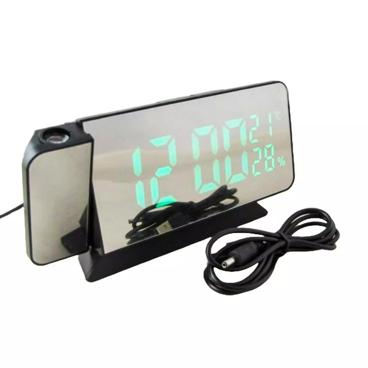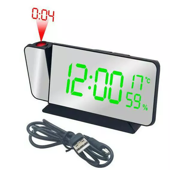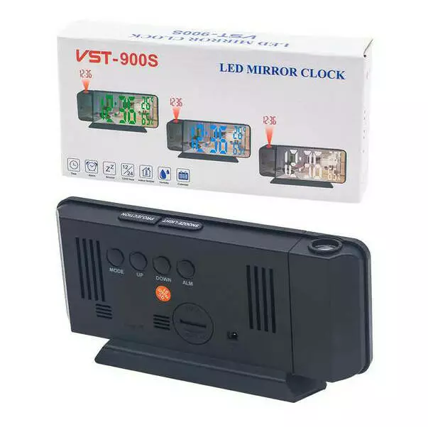Додаткові характеристики: будильник, календар, вологість, температура, проектор часу червоним світлом (поворот на 180 градусів), дата, батарейка CR2032 для збереження налаштувань (тільки від батарейки годинник не працює, екран не світиться), дзеркальна поверхня