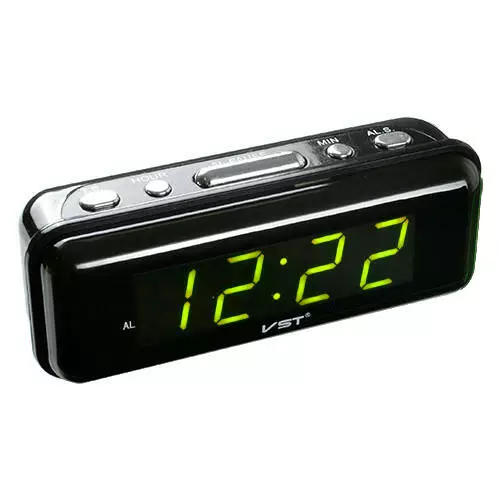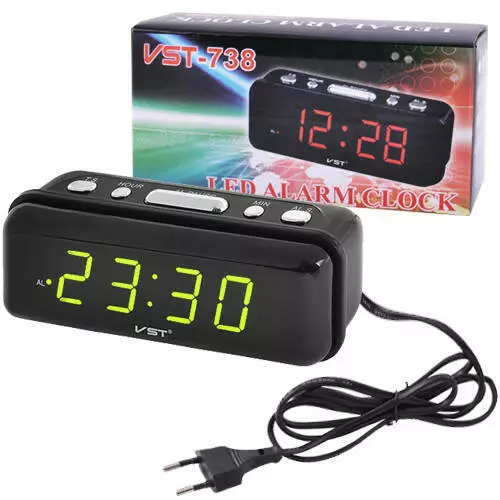 Додаткові характеристики: Настільний годинник з LED-дисплеєм, будильник, м'яке зелене свічення. Функція пам'яті (запасне живлення від двох батарей AAA) - не збиваються установки після відключення електрики.
