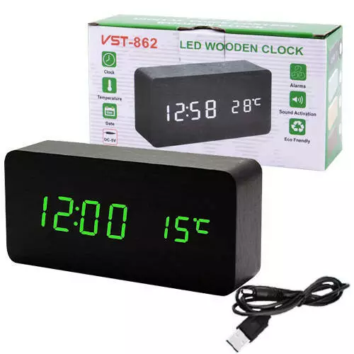 Годинник мережевий VST-862-4 зелений, (корпус чорний) температура, USB