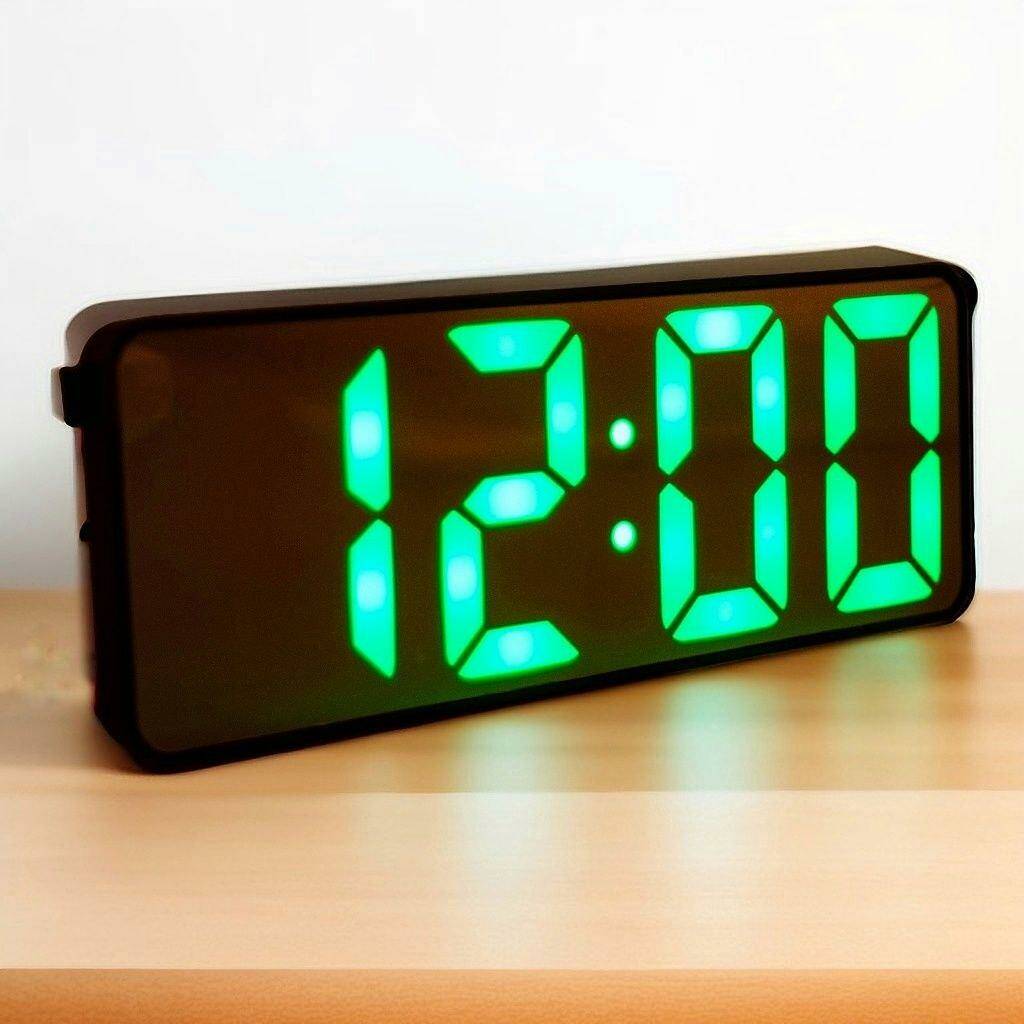 Годинник мережевий VST-898-4, яскраво-зелений, температура, USB