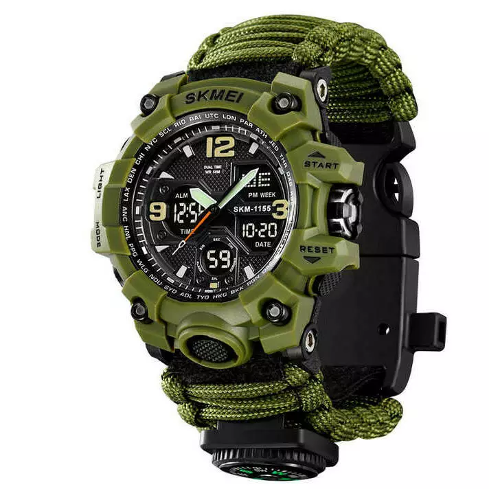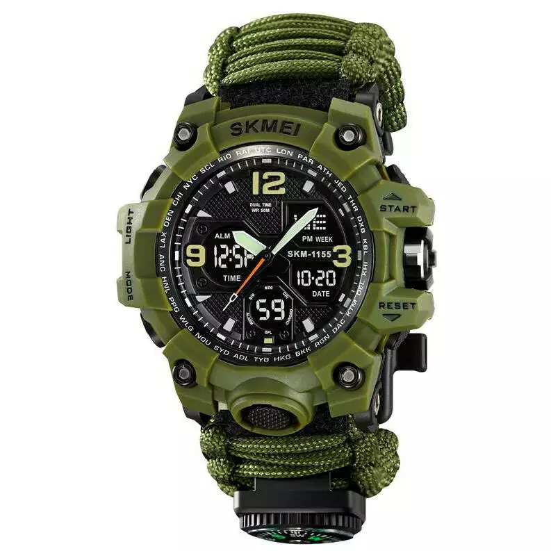 Годинники наручні 1155BAG SKMEI PARACORD, ARMY GREEN, Compass, термометр, свисток, кресало