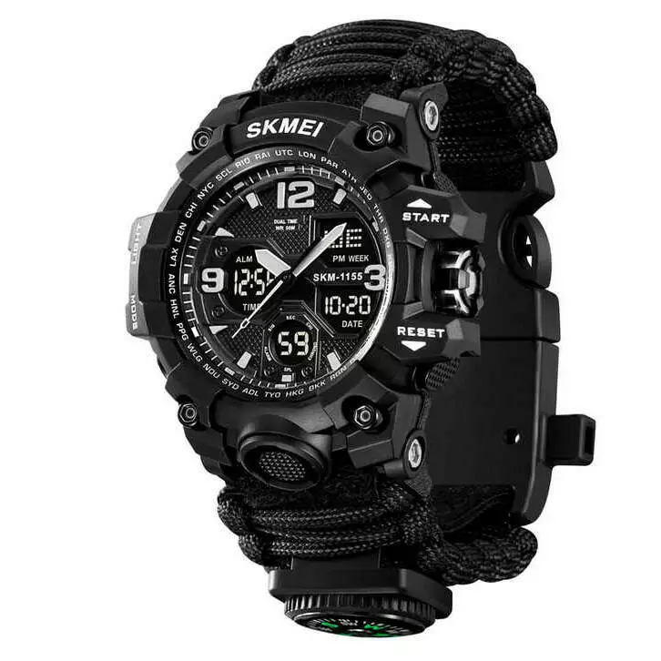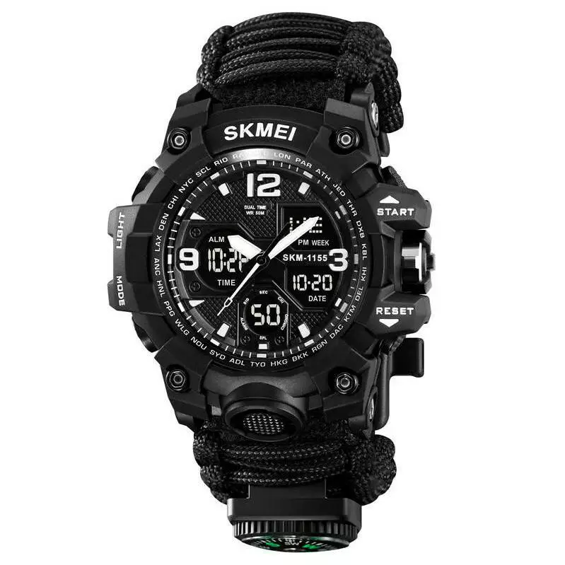 Годинники наручні 1155BKBK SKMEI PARACORD, BLACK, Compass, термометр, свисток, кресало