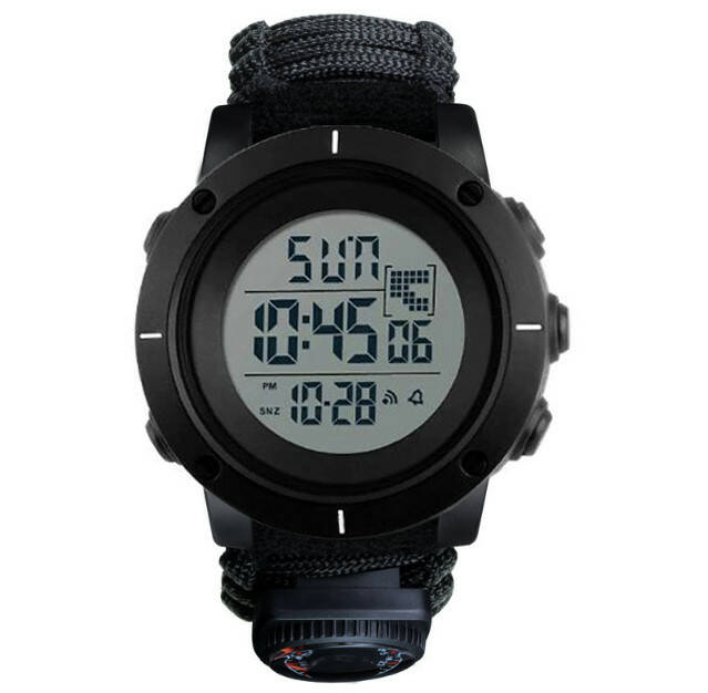 Годинники наручні 1213BK SKMEI PARACORD, BLACK, BIG SIZE, Compass, термометр, свисток, кресало