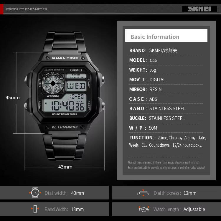 Годинники наручні 1335BK SKMEI, BLACK