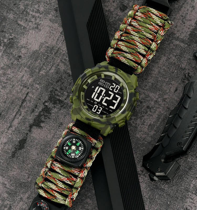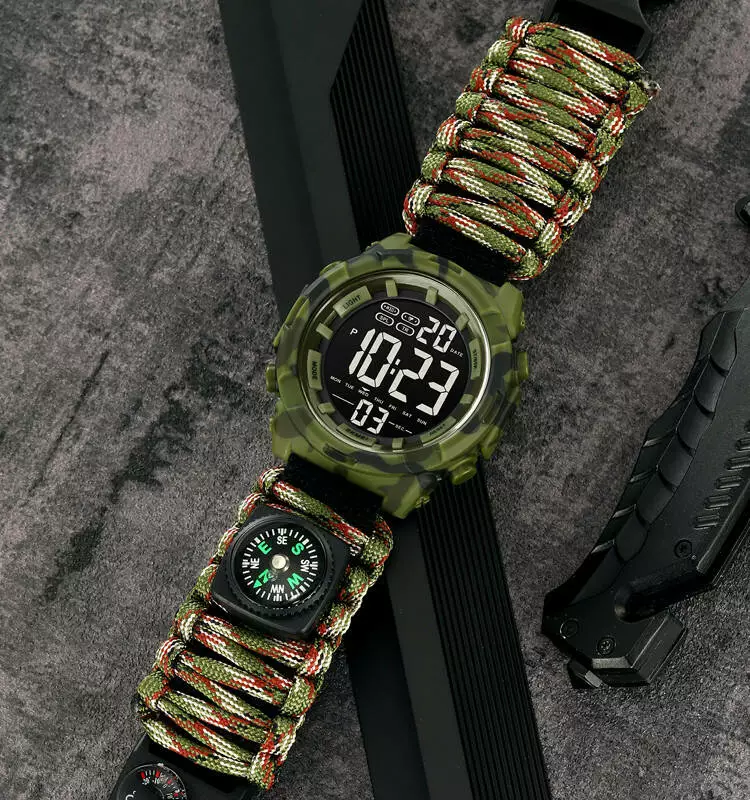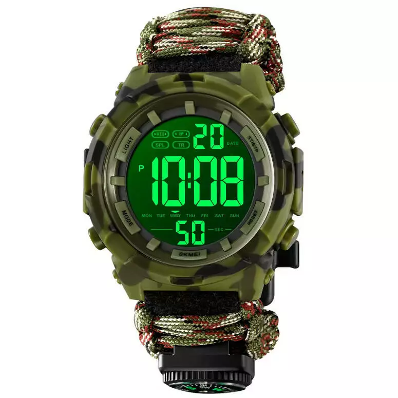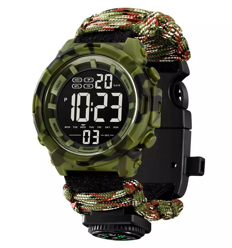 Годинники наручні 1845NCMGN SKMEI PARACORD, ARMY GREEN CAMOUFLAGE, Compass, термометр, свисток, кресало