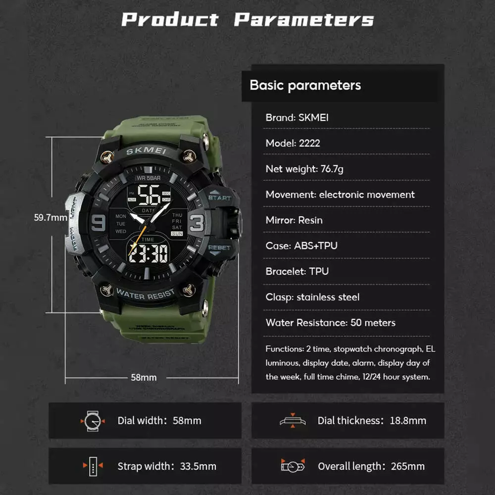 Годинники наручні 2222AG SKMEI, ARMY GREEN