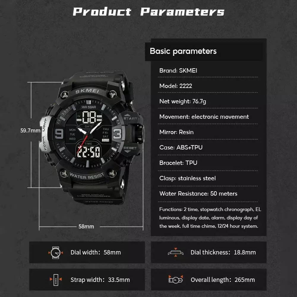 Годинники наручні 2222BK SKMEI, BLACK