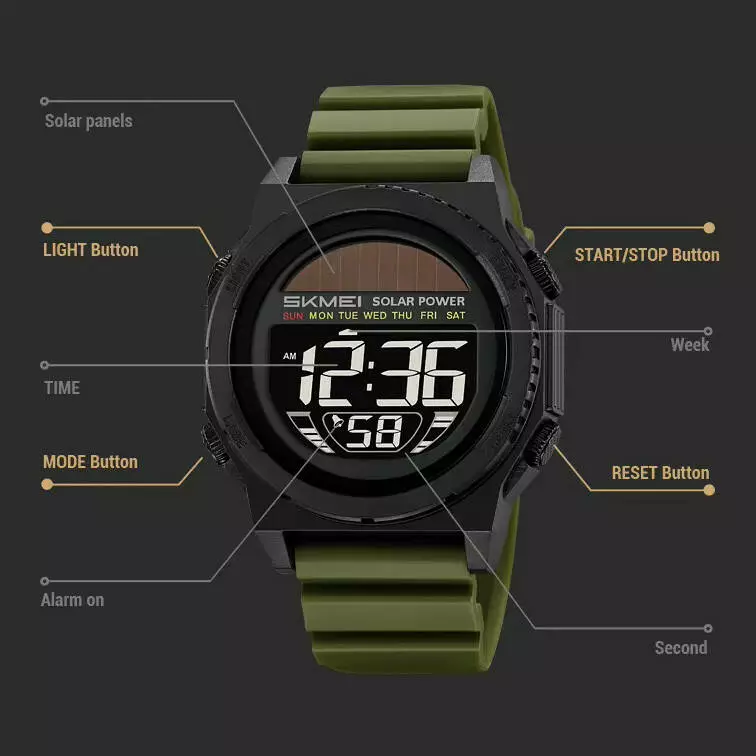 Годинники наручні 2358AG SKMEI, ARMY GREEN, Solar Power