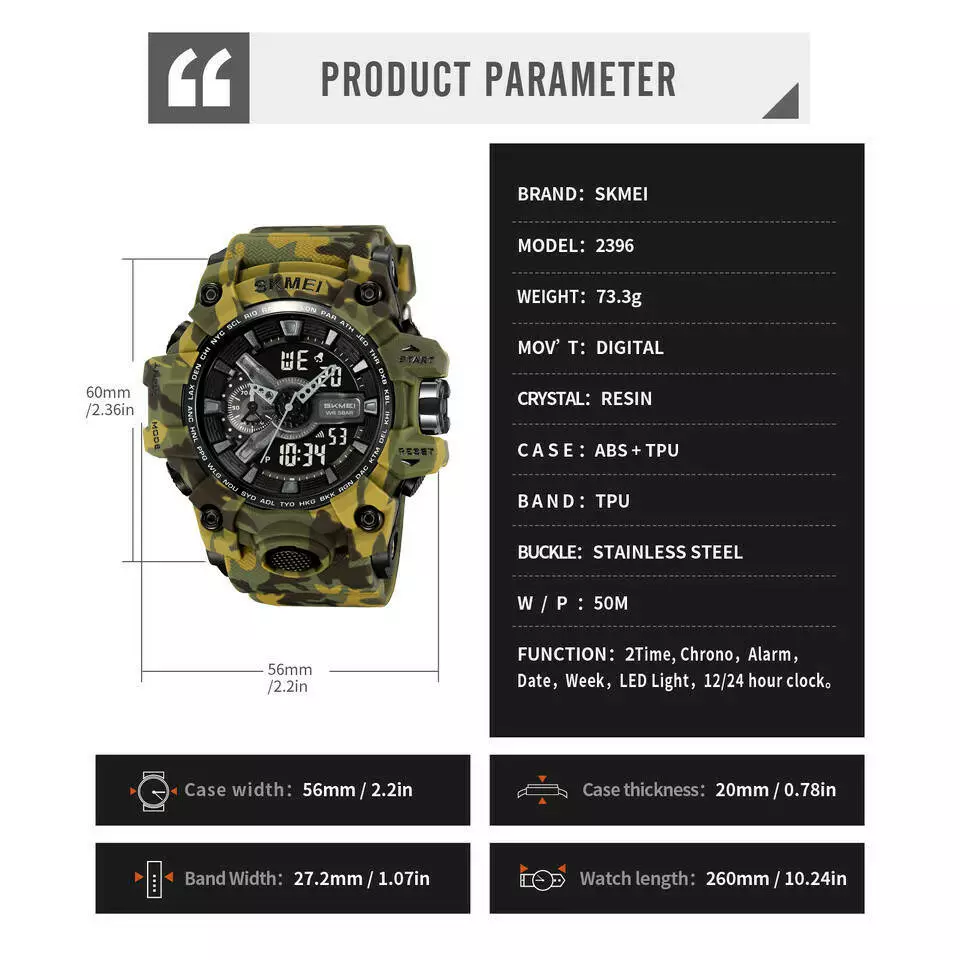 Годинники наручні 2396CMGN SKMEI, ARMY CAMOUFLAGE