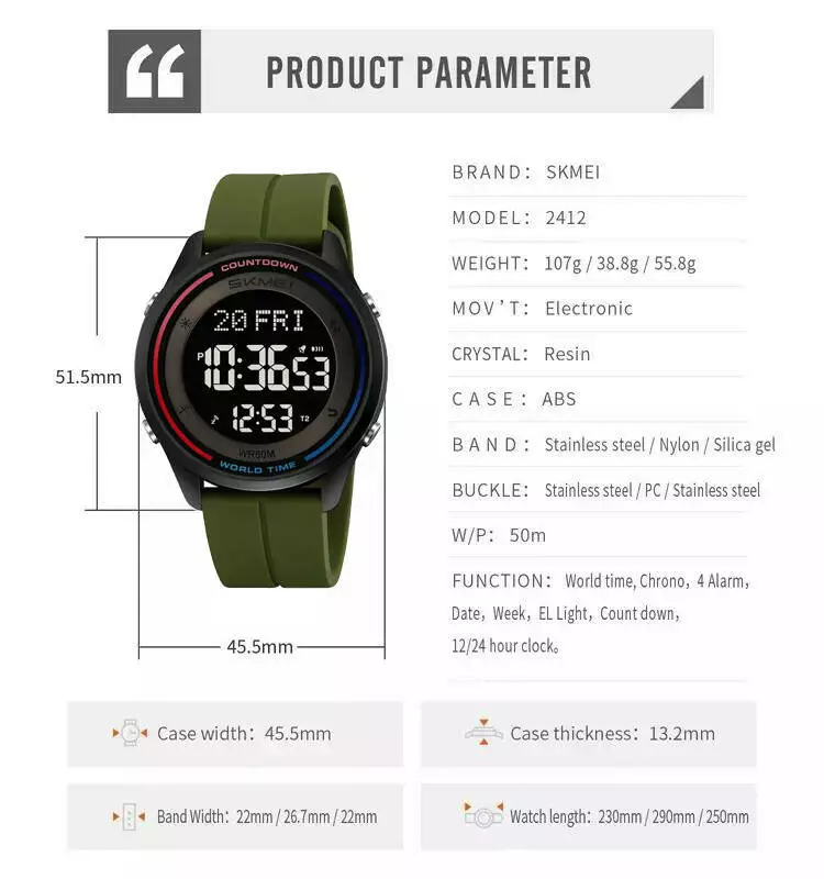 Годинники наручні 2412PAG SKMEI, ARMY GREEN-SILICONE