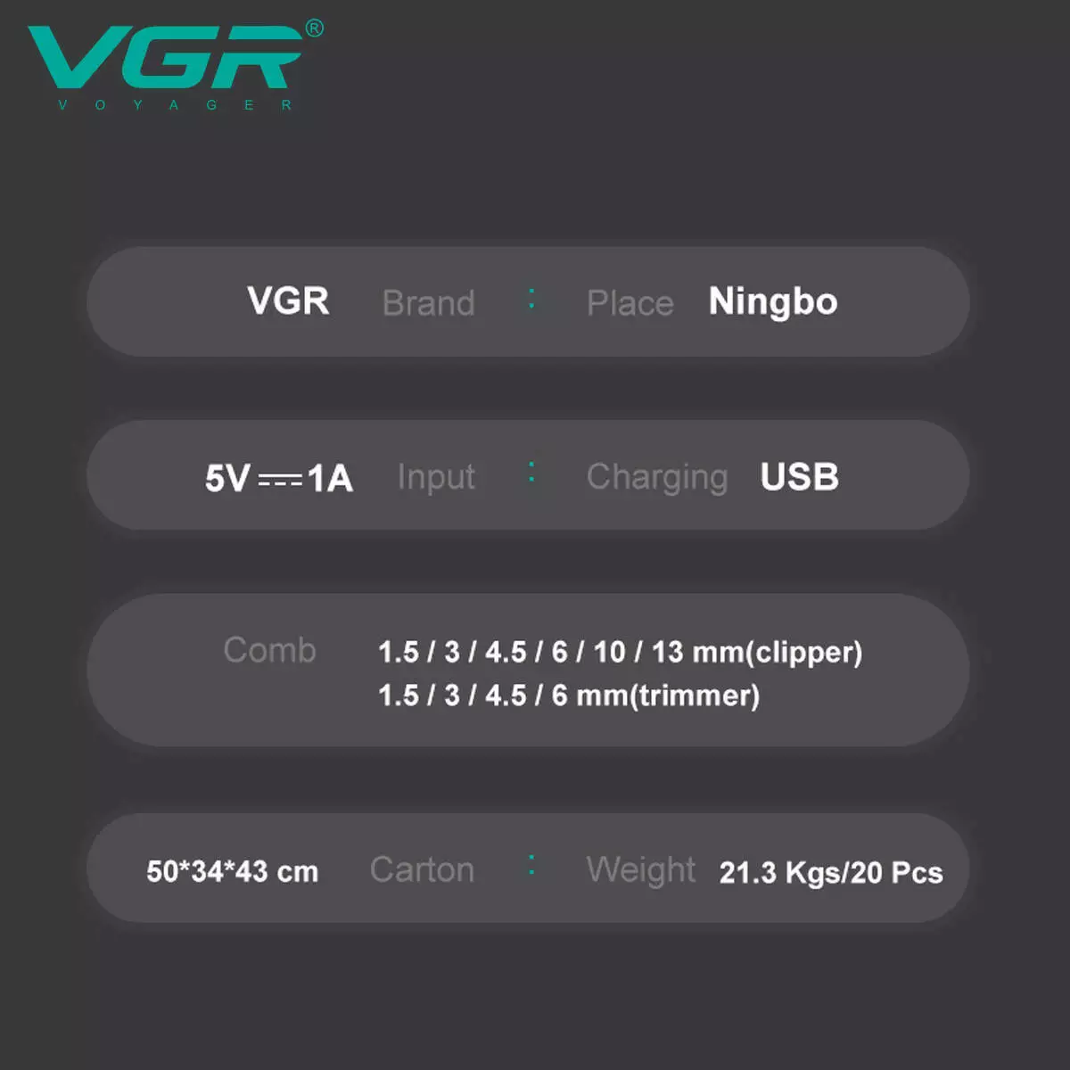 Комплект VGR 2 в 1 V-600&900 - це надійний вибір для тих, хто цінує якість, функціональність і зручність в одному пристрої. Він забезпечує професійний догляд за зовнішністю у домашніх умовах.
