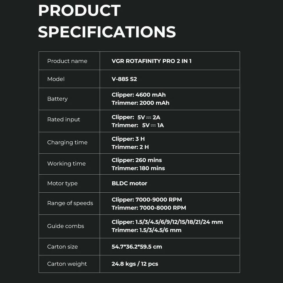 - Название (укр.): Комплект VGR 2 в 1 V-885 S2 GREEN, акумуляторна машинка для стрижки (clipper) та триммер