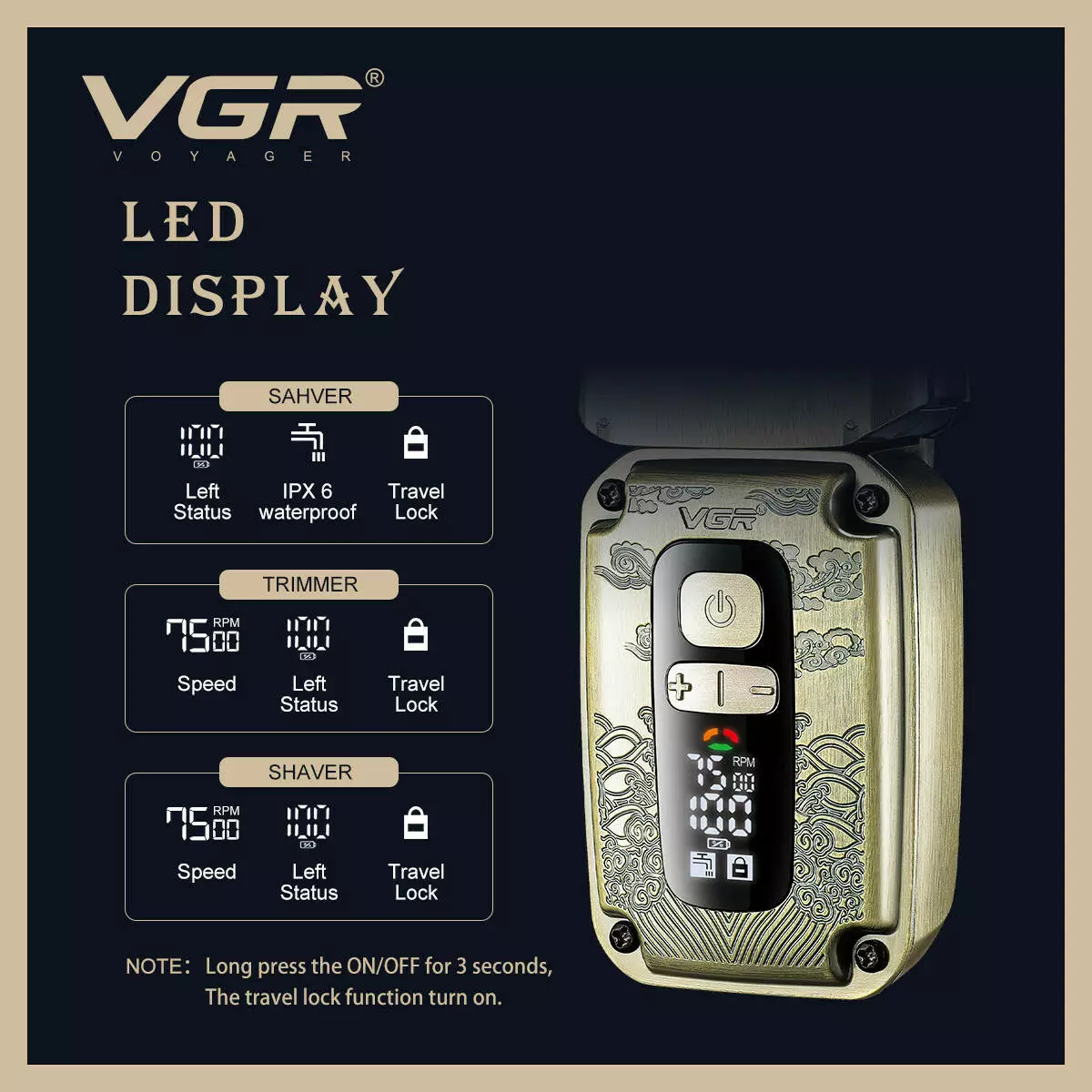 Комплект VGR 3 в 1 V-642 - це ідеальний вибір для тих, хто цінує якість, функціональність та зручність в одному пристрої. Він забезпечує професійний догляд за зовнішністю в домашніх умовах.
