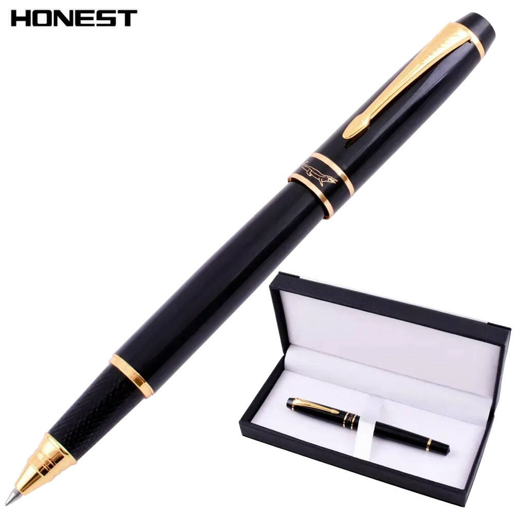 Кулькова ручка в подарунковому футлярі, чорна із золотими вставками Honest 2021