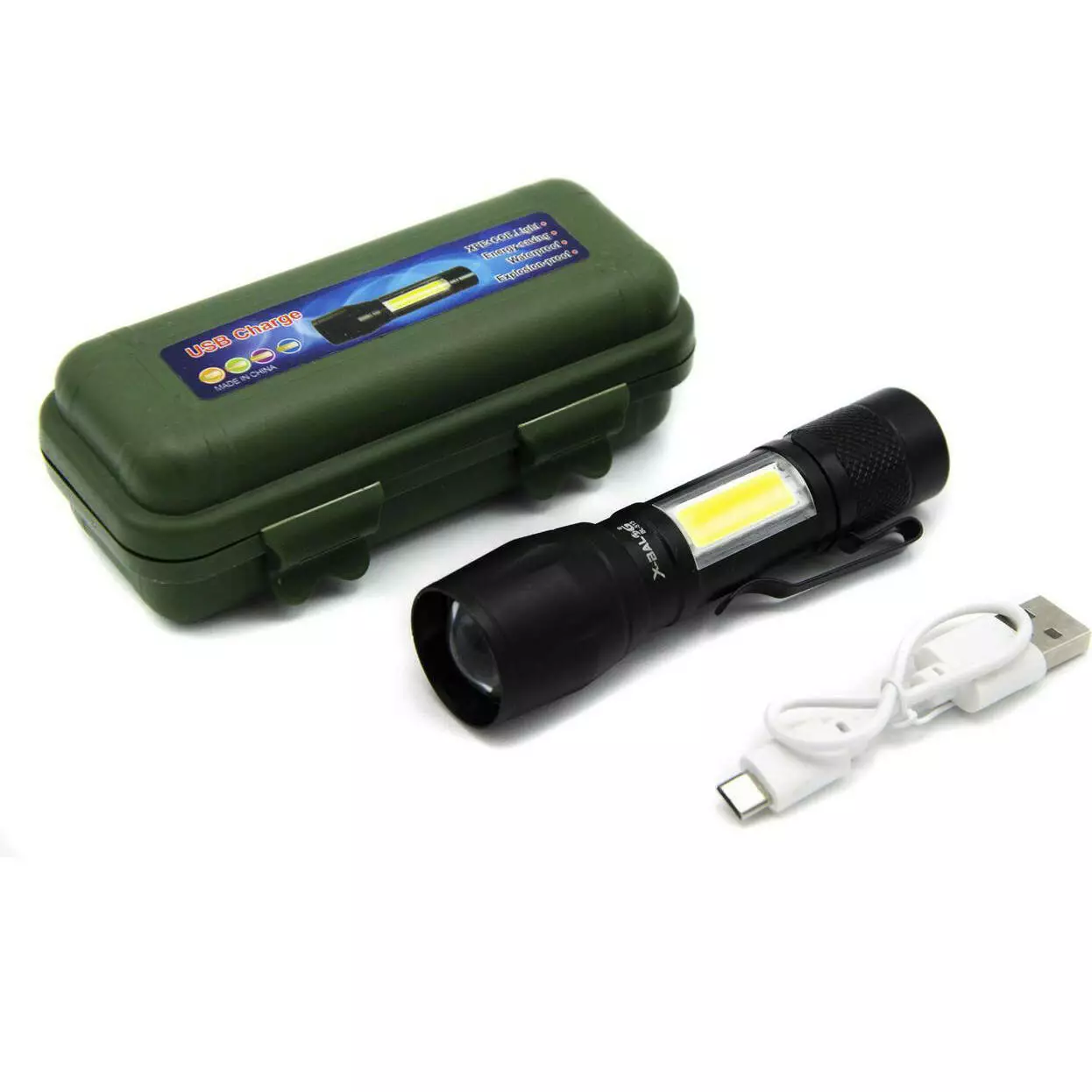 Ліхтар 513-XPE+COB, Li-Ion акум., zoom, ЗП microUSB