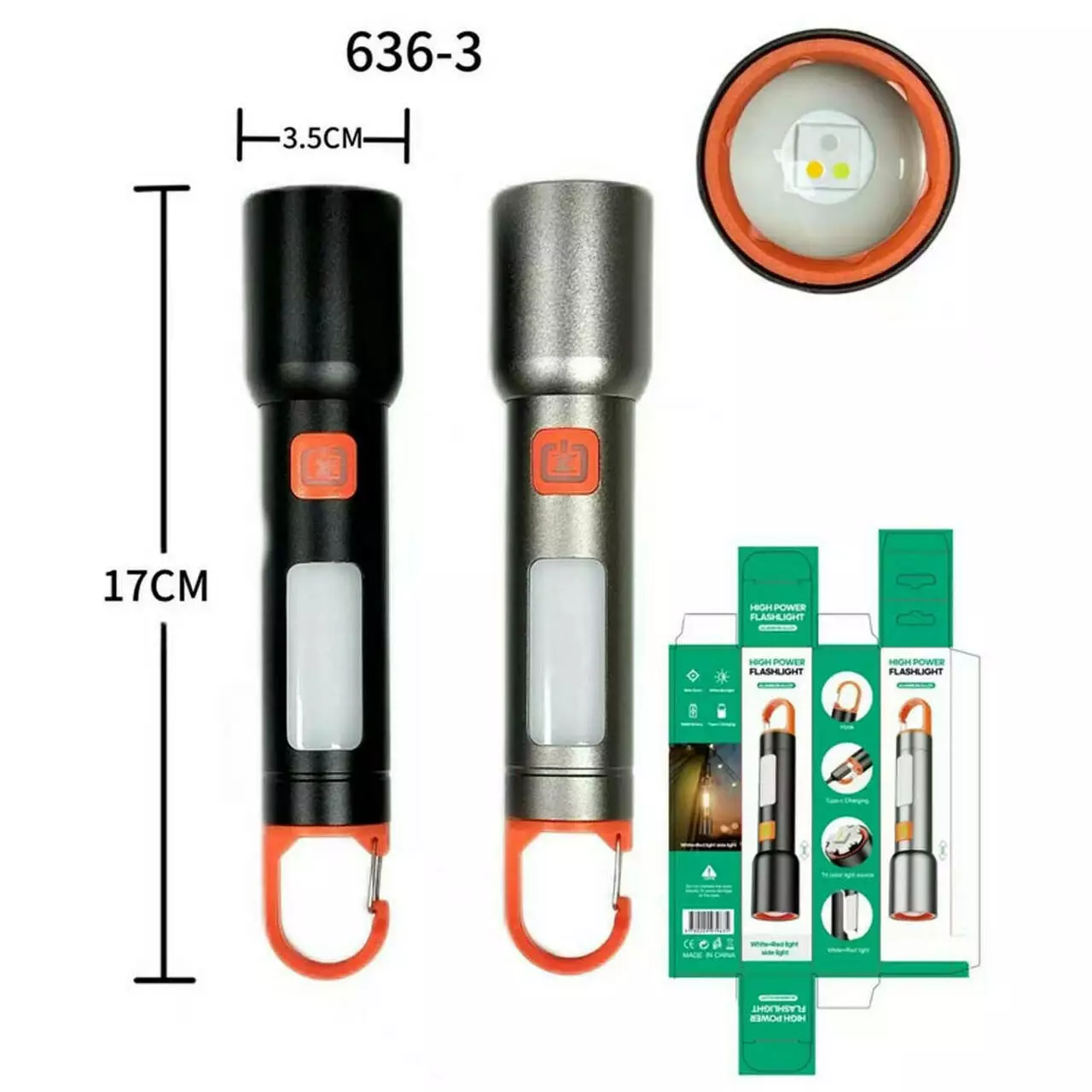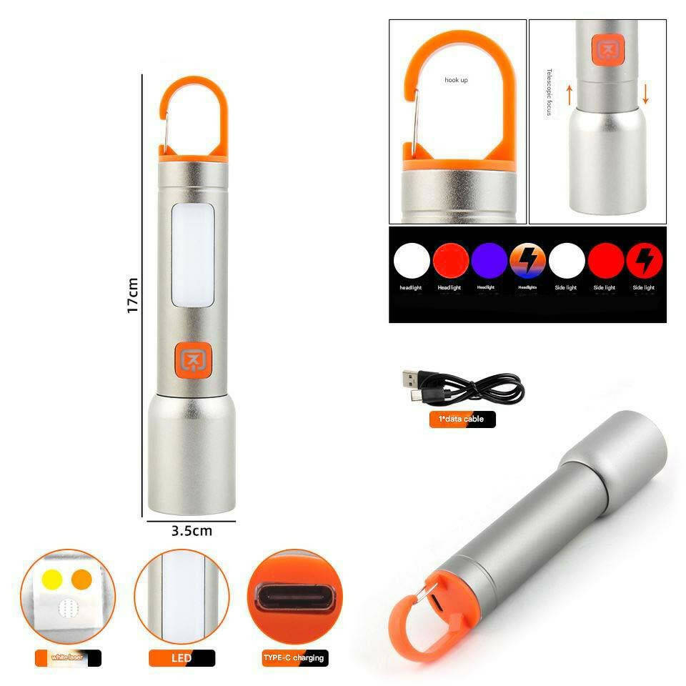 Ліхтар BL-636-3TG(WHITE+RED+BLUE)+COB(WHITE+RED), Li-Ion акумулятор, ЗП Type-C, zoom, Box
