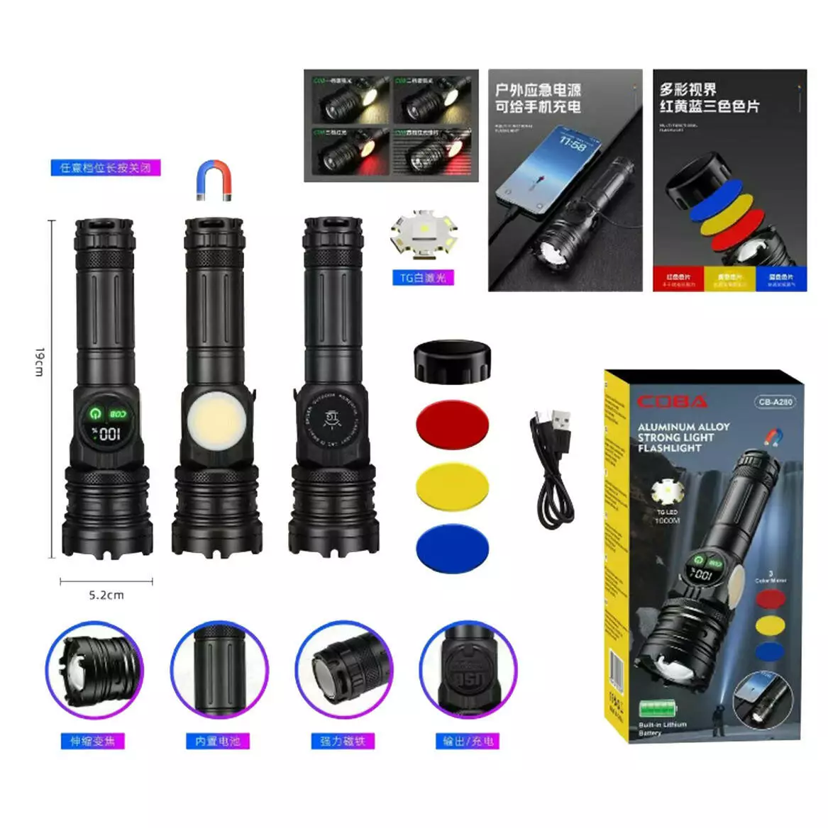 Ліхтар CB-A280-TG+COB(white+red), Li-Ion акумулятор, Power bank, ЗП Type-C, 3 фільтри, магніт, zoom, Box