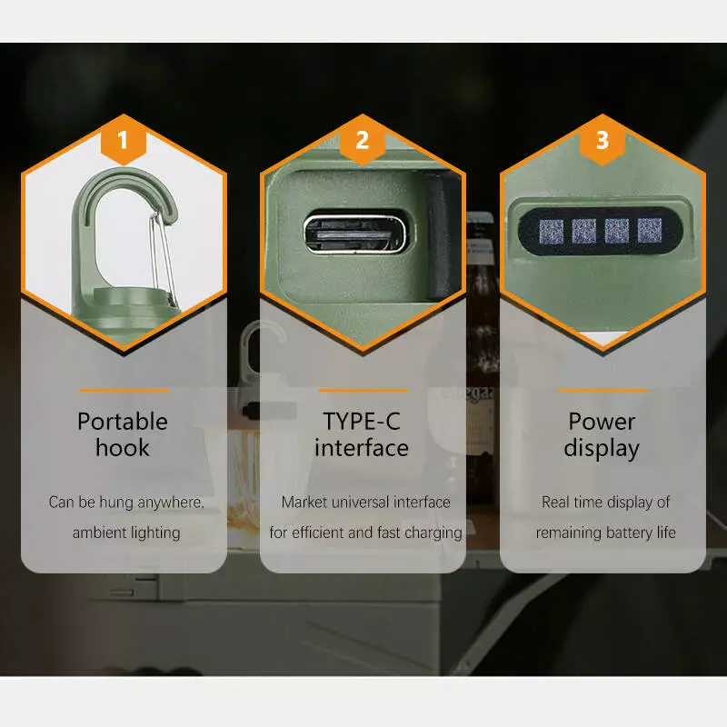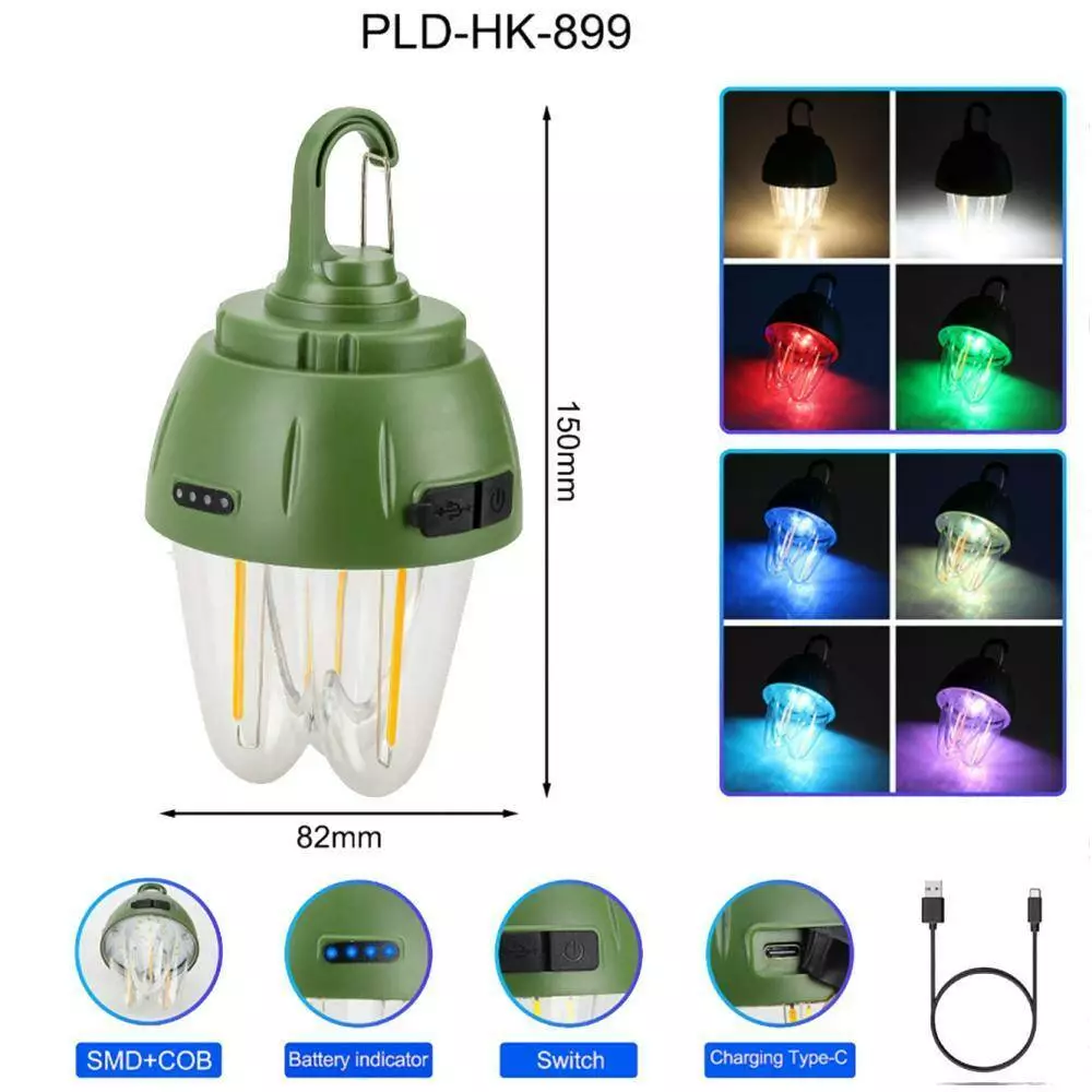 Ліхтар кемпінг 899-SMD(RGB)+COB вольфрамова лампа, Li-Ion аккум., ЗУ Type-C, гачок