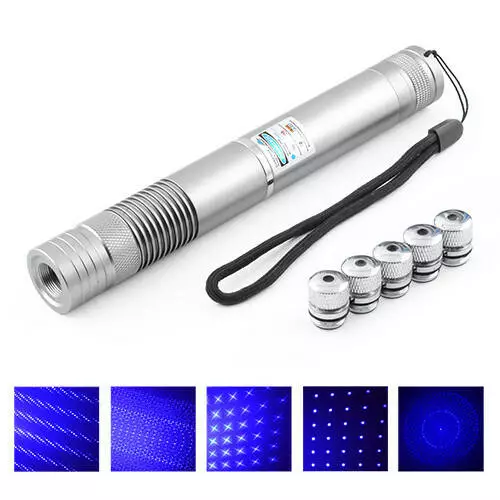 Ліхтар-лазер синій YX-B008, 2х16340, 5 насадок, ЗП 220V, Box