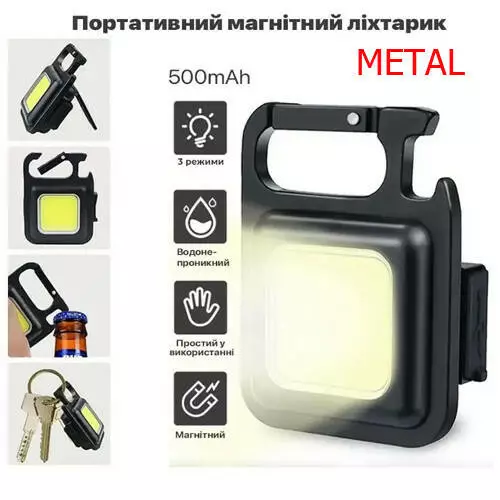 Ліхтар MULTIFUNCTIONAL BL-J031-COB metal, Li-Ion акумулятор, магніт, карабін, відкривалка, ЗП Type-C