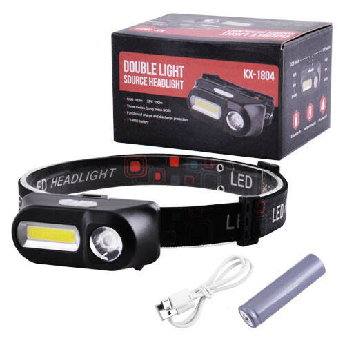 Ліхтар налобний 1804-XPE+COB, 1x18650, ЗП Type-C