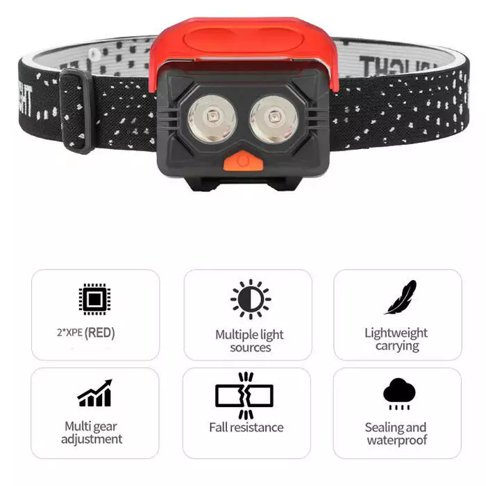 Додаткові характеристики: регульований кут нахилу голови ліхтаря, вологозахист, червоний фільтр-козирок