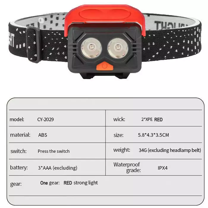 Ліхтар налобний 2029-2XPE(RED), 1 РЕЖИМ, 3хААА, пластик