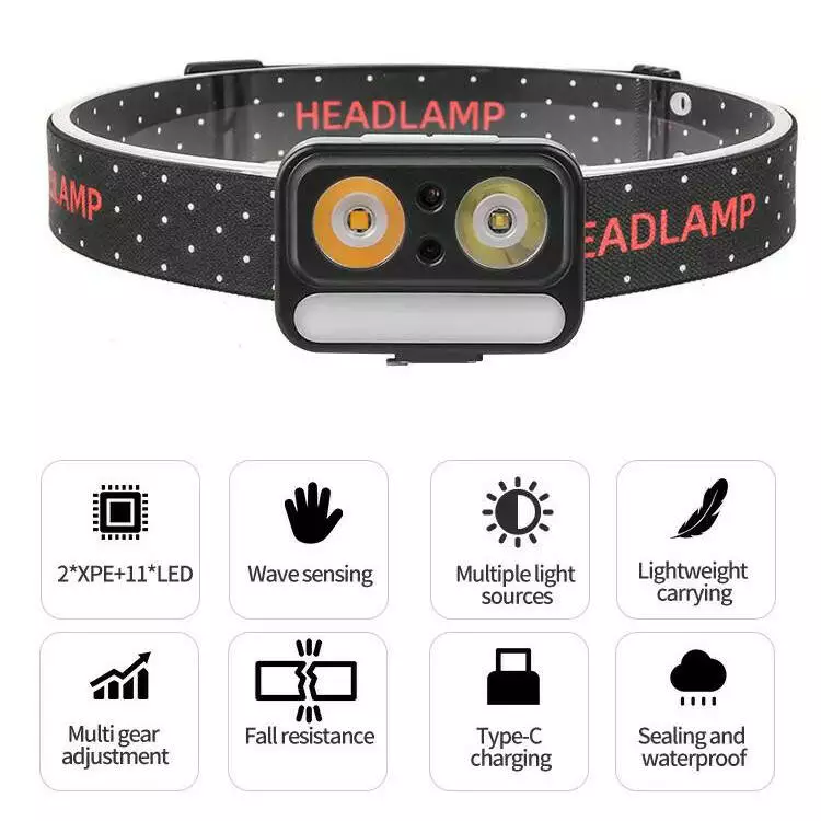 Ліхтар налобний 2069-XPG(White)+XPG(Yellow)+5SMD(Red), Motion Sensor, Li-Ion акумулятор, ЗП Type-C