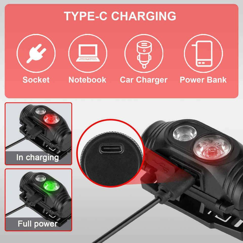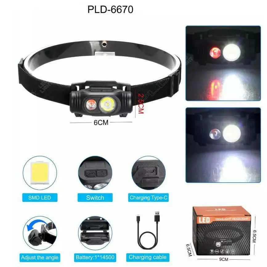 Ліхтар налобний 6670-COB(White)+SMD(Red), ЗП Type-C, 1x14500, Box