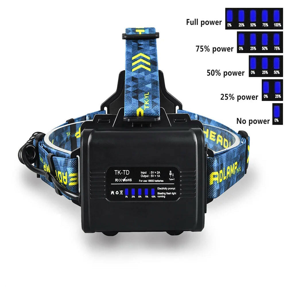 Ліхтар налобний BL-25CC-P360, 3x18650, Power Bank, ЗП Type-C, zoom, Box