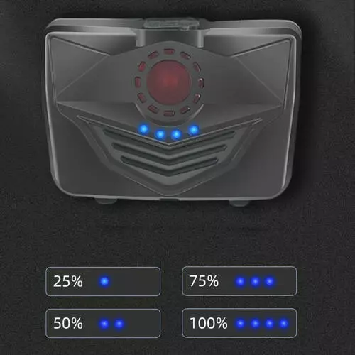 - Дополнительные характеристики: индикация заряда, ругулируемый угол наклона головы фонаря