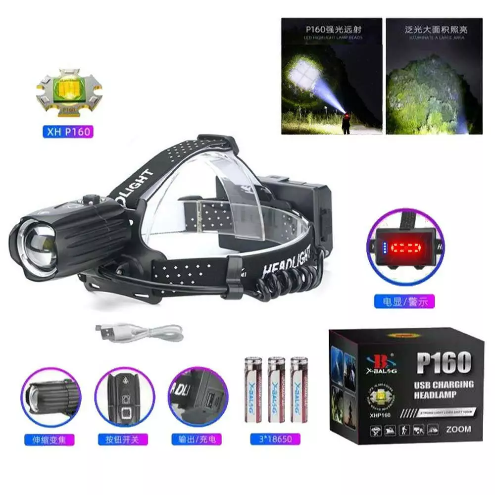 Ліхтар налобний BL-T35-P160, 3x18650, Power Bank, ЗП Type-C, zoom, Box