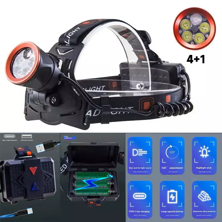 Ліхтар налобний CT021 6+1 ULTRA LED, 3x18650, Power Bank, ЗП Type-C
