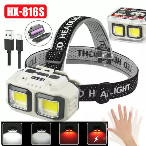 Ліхтар налобний HX-816S-2COB(White+Red), Motion Sensor, Waterproof, 1x18650, ЗП Type-C, Box