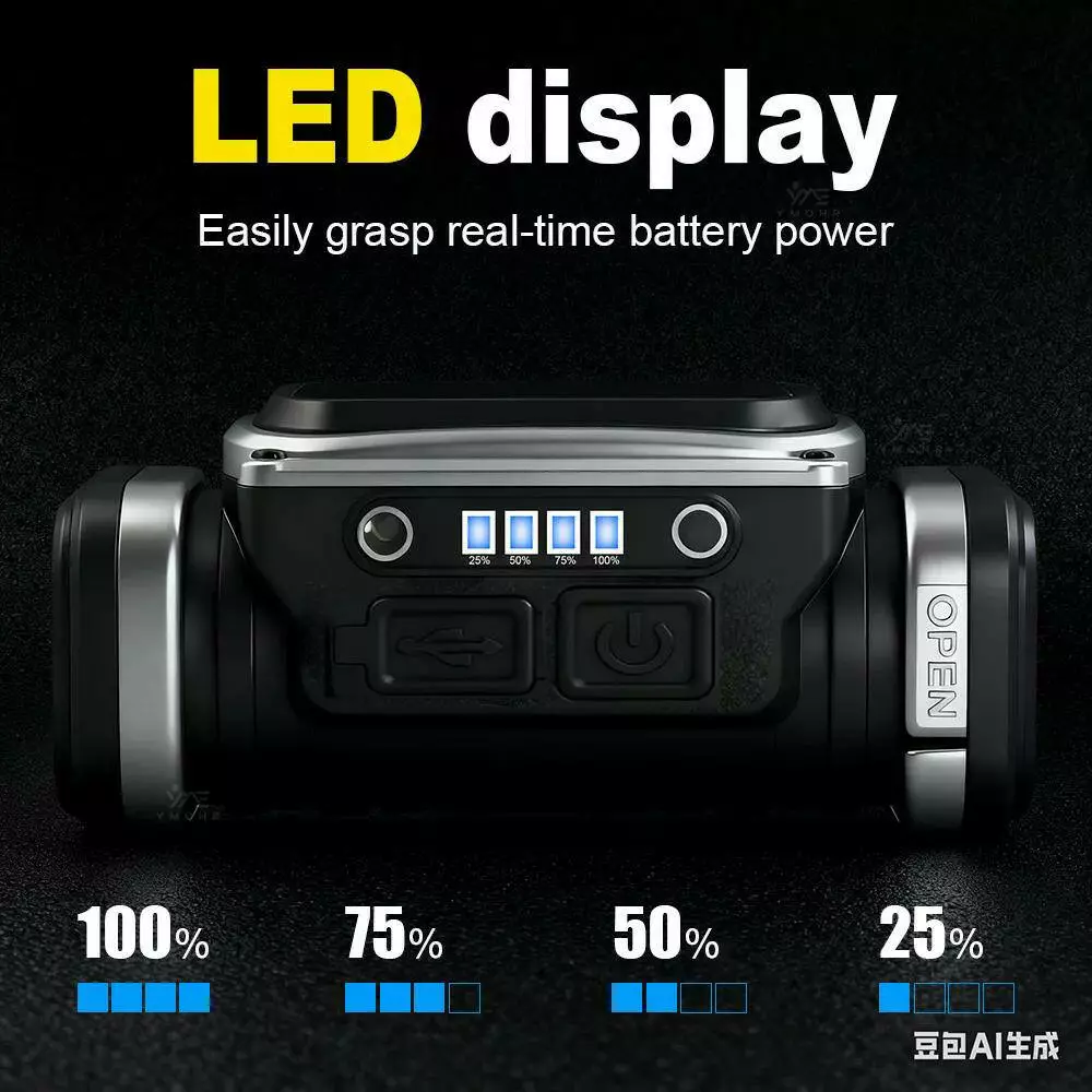 Додаткові характеристики: регульований кут нахилу голови ліхтаря, індикація рівня заряду батареї, вологозахист, магніт