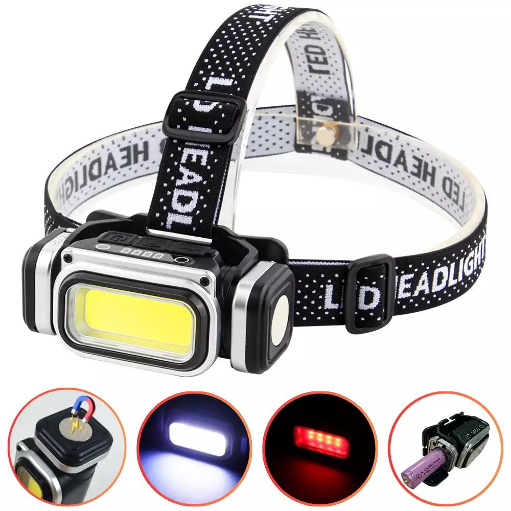 Ліхтар налобний HX-T80-COB(White+Red), Waterproof, 1x18650, ЗП Type-C, магніт, Box