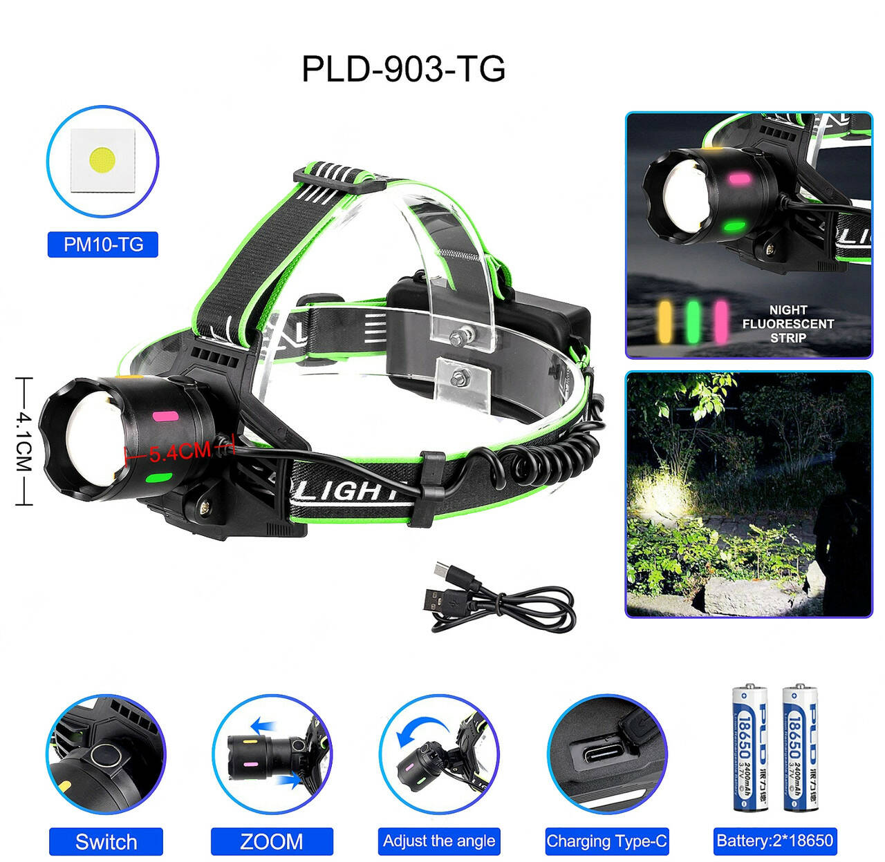 Ліхтар налобний NIGHT VISION FLUORESCENCE PLD-903-TG, 1 режим, 2x18650, ЗП Type-C, zoom