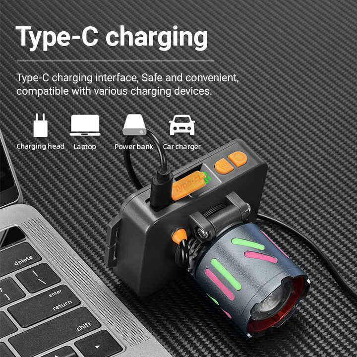 Ліхтар налобний NIGHT VISION FLUORESCENCE WH-2111-TG, IPX44, Li-Ion акум., ЗП Type-C, zoom, Box