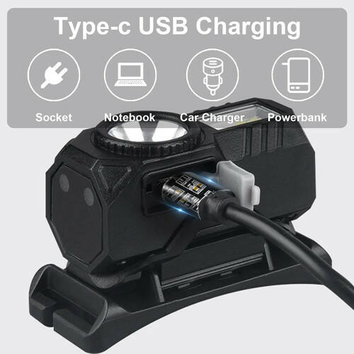 Ліхтар налобний T131-XPE+3SMD(Red+Green+Blue+UV), Motion Sensor, Li-Ion акумулятор, магніт, кліпса, ЗП Type-C, Box