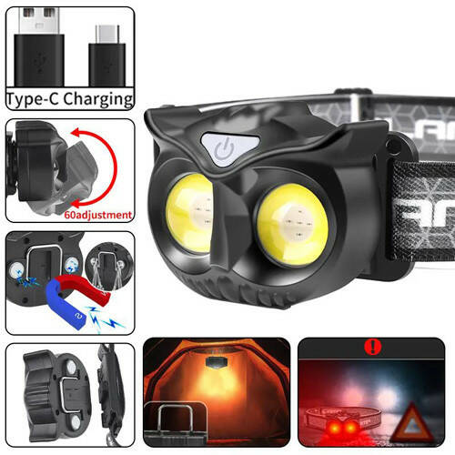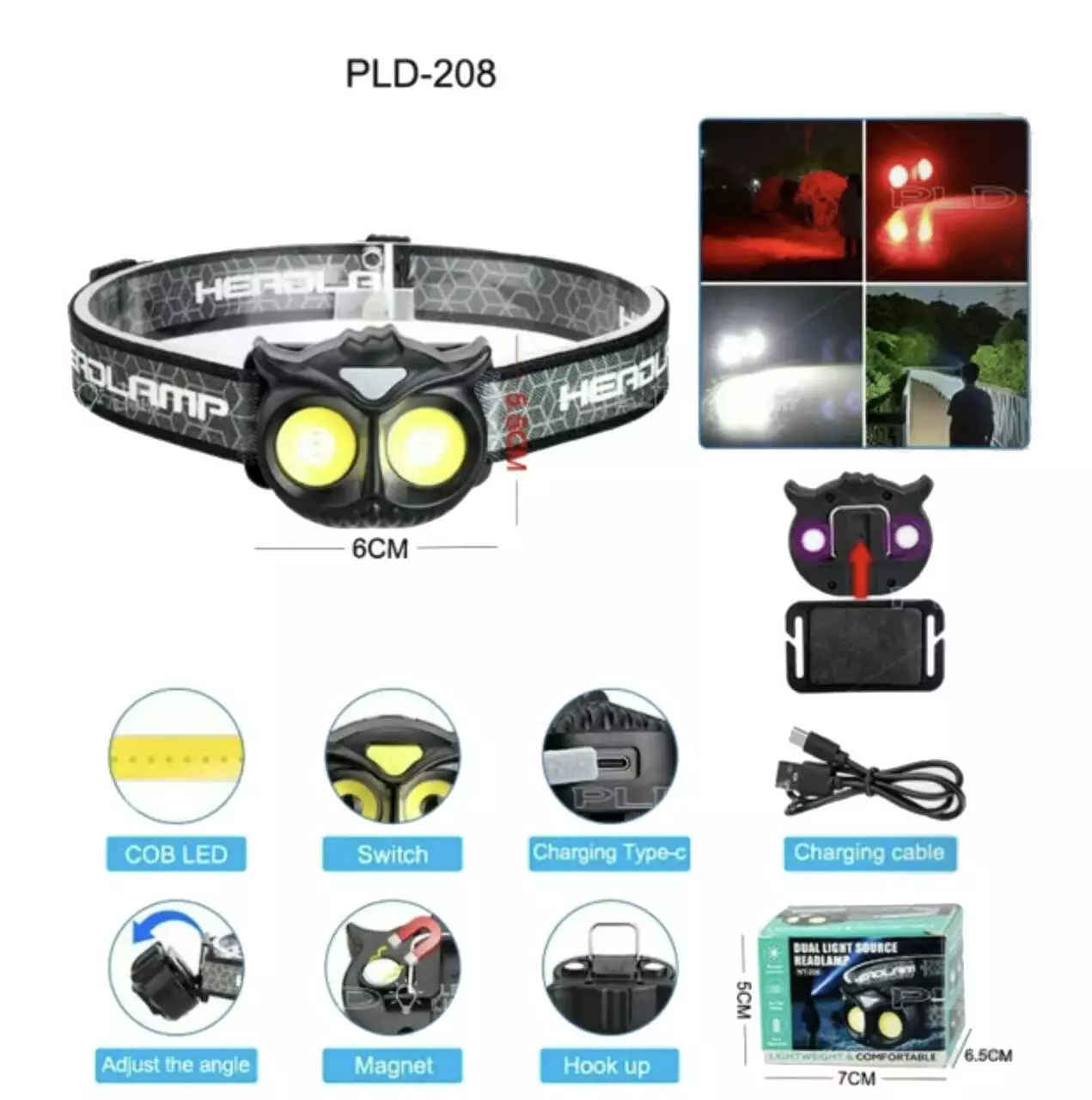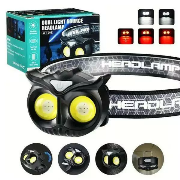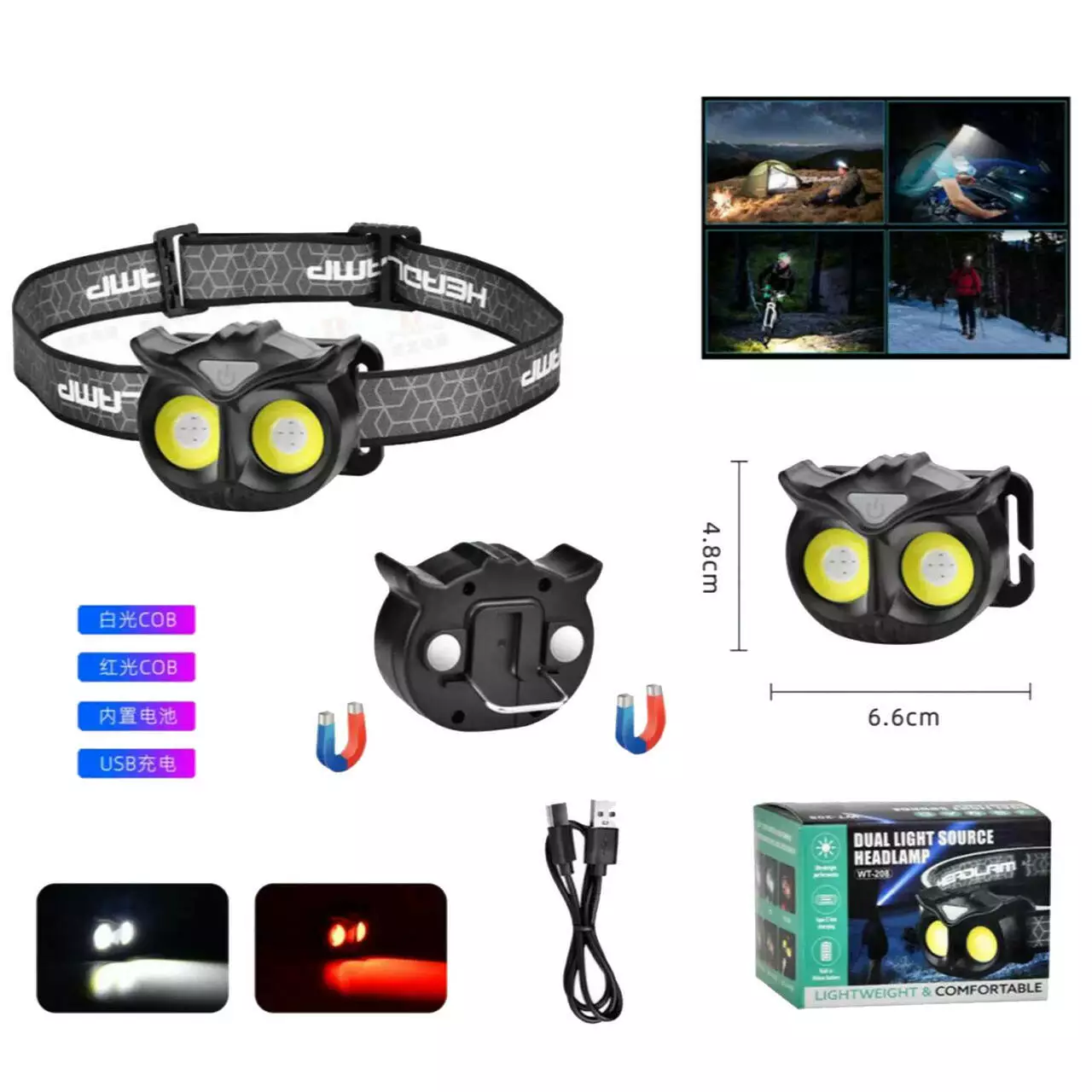 Ліхтар налобний WT208-2COB(White+Red), Li-Ion акумулятор, магніт, ЗП Type-C, Box