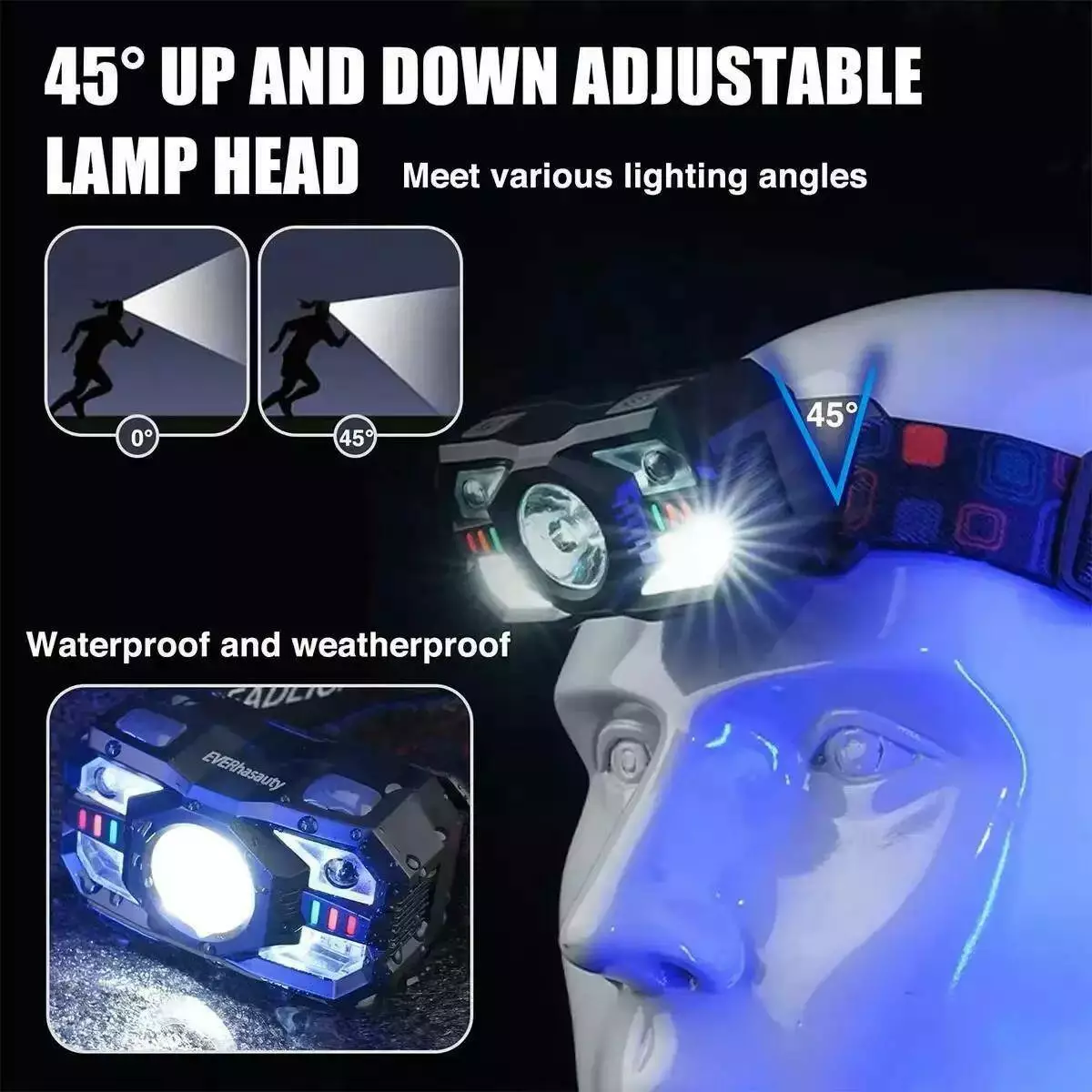 Ліхтар налобний XS-09-LM+6SMD(WHITE+RED), Motion Sensor, Li-Ion