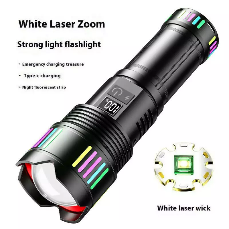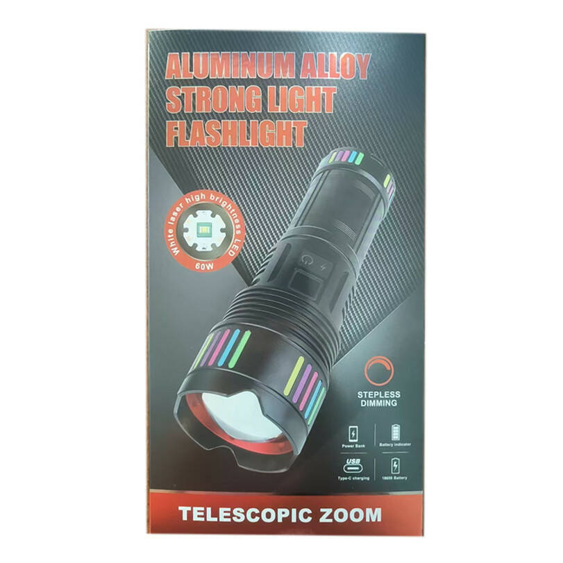 Ліхтар NIGHT VISION FLUORESCENCE C203-1 WHITE LASER LED GT-50W, 4x18650, power bank, ЗУ Type-C, zoom