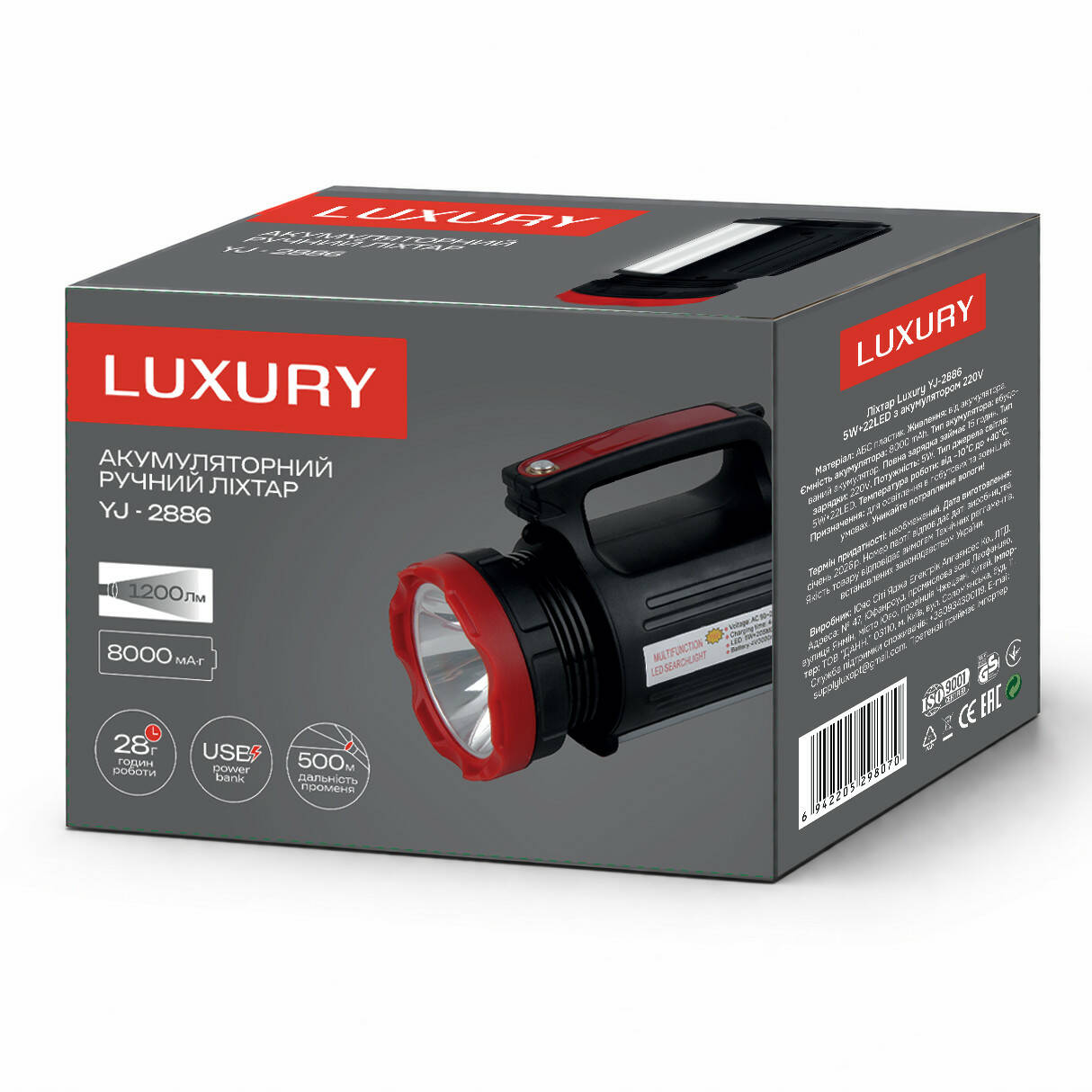 Комплектація: ліхтар / ЗУ 220V / ремінець для плеча