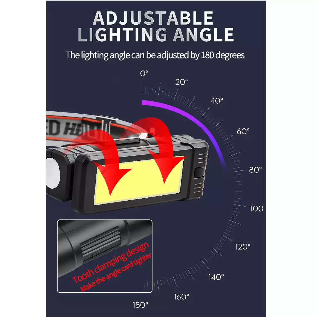 Додаткові характеристики: голова, що обертається, на 180+180 градусів, магніт, 2 в 1 кемпінг + на лоб, індикація рівня заряду батареї