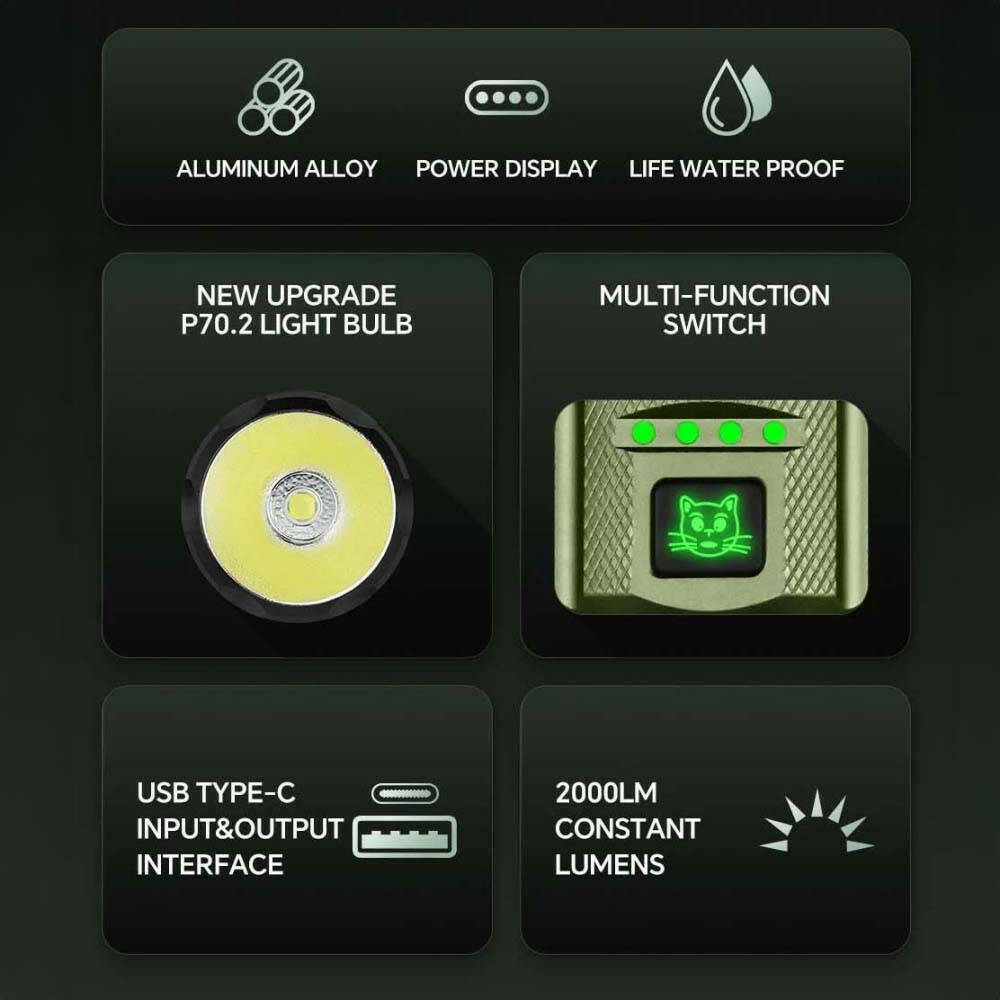 Ліхтар YEMAO YM-A1 XHP70.2, 1x38121, Power Bank, ЗУ Type-C, ковпачок