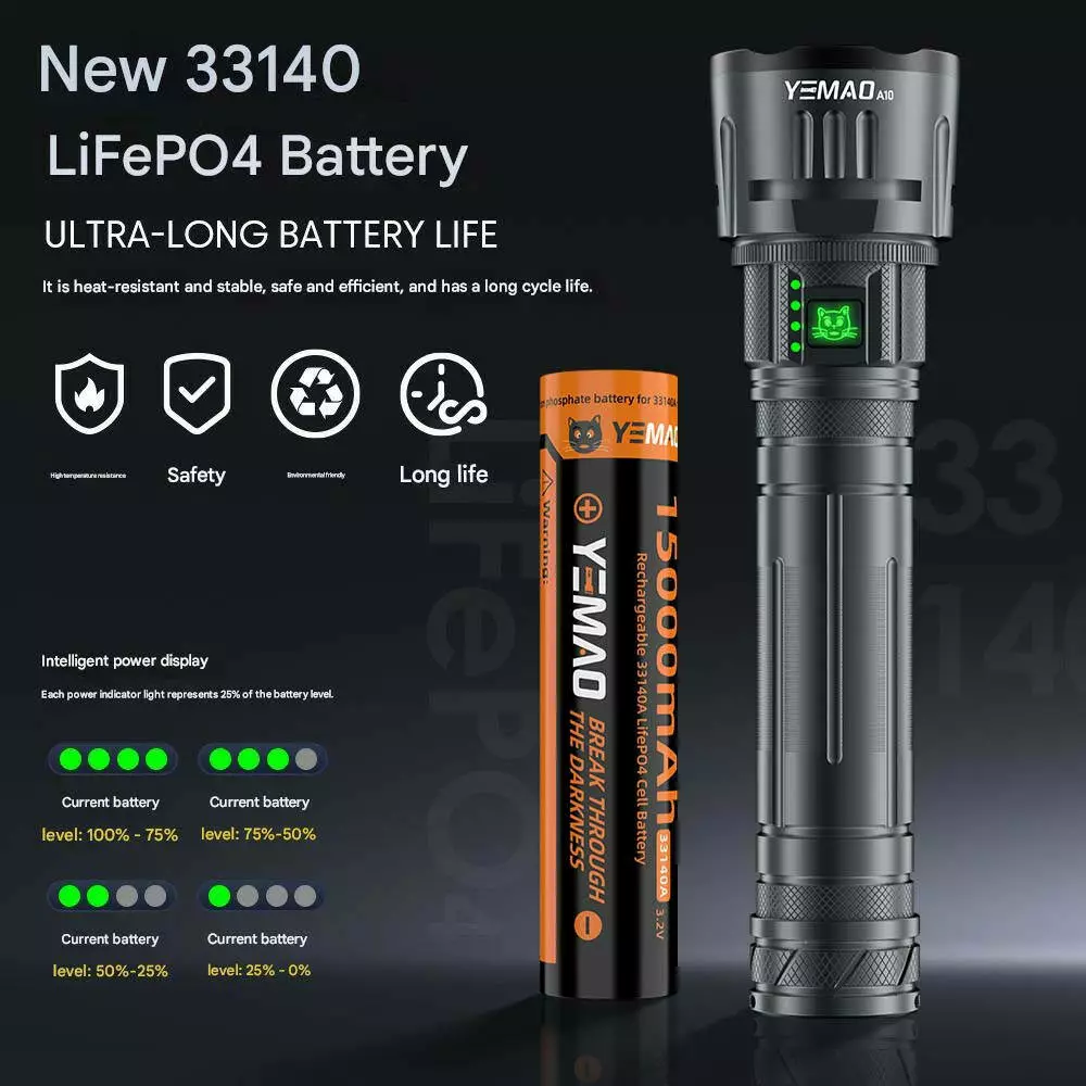 Ліхтар YEMAO YM-A10 P70, 1x33140, ЗУ Type-C, 3 фільтри, ковпачок