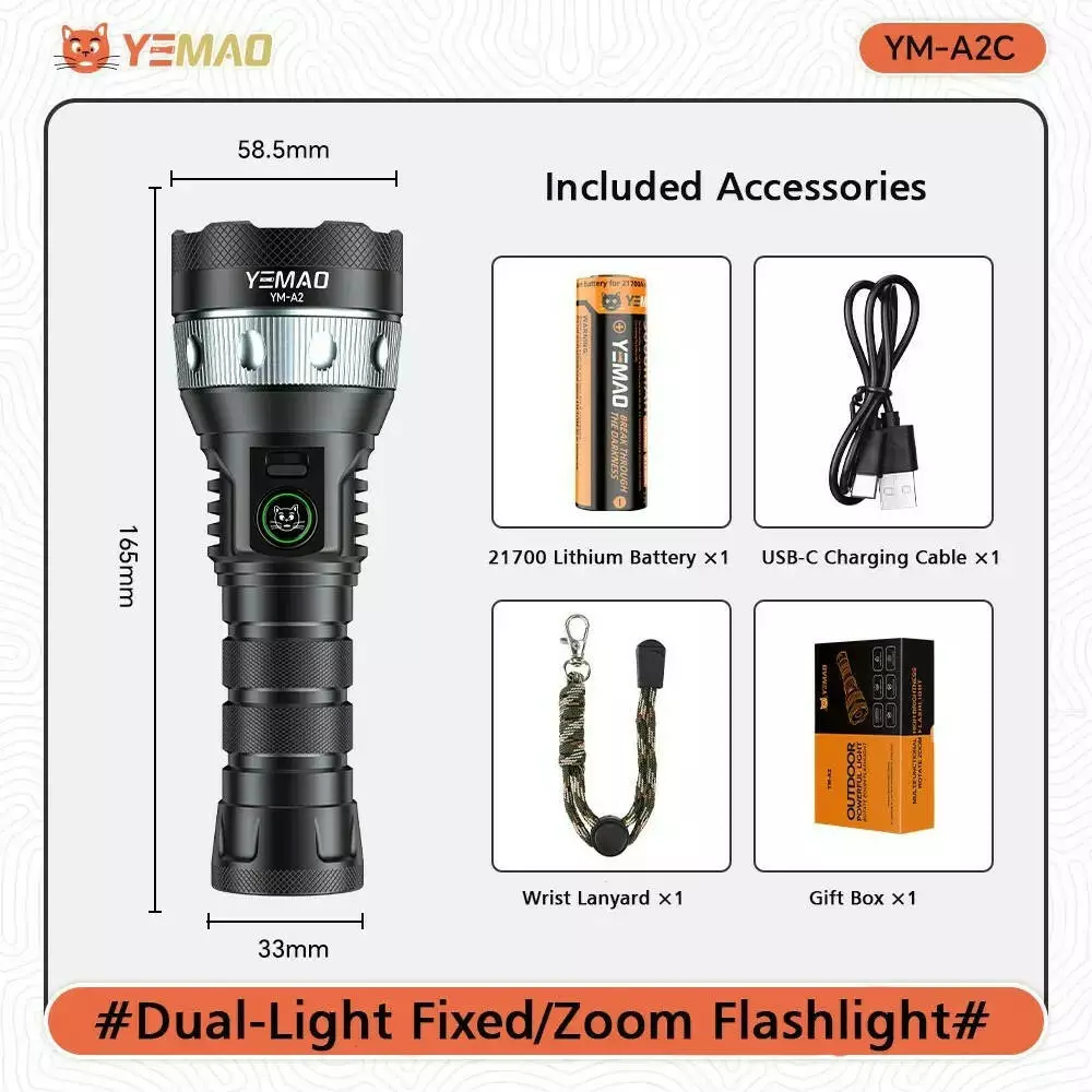Ліхтар YEMAO YM-A2-C Sanan 7171+COB, 1x21700, ЗУ Type-C, zoom