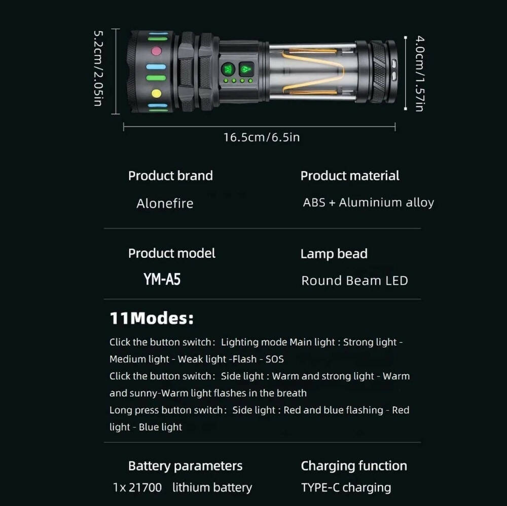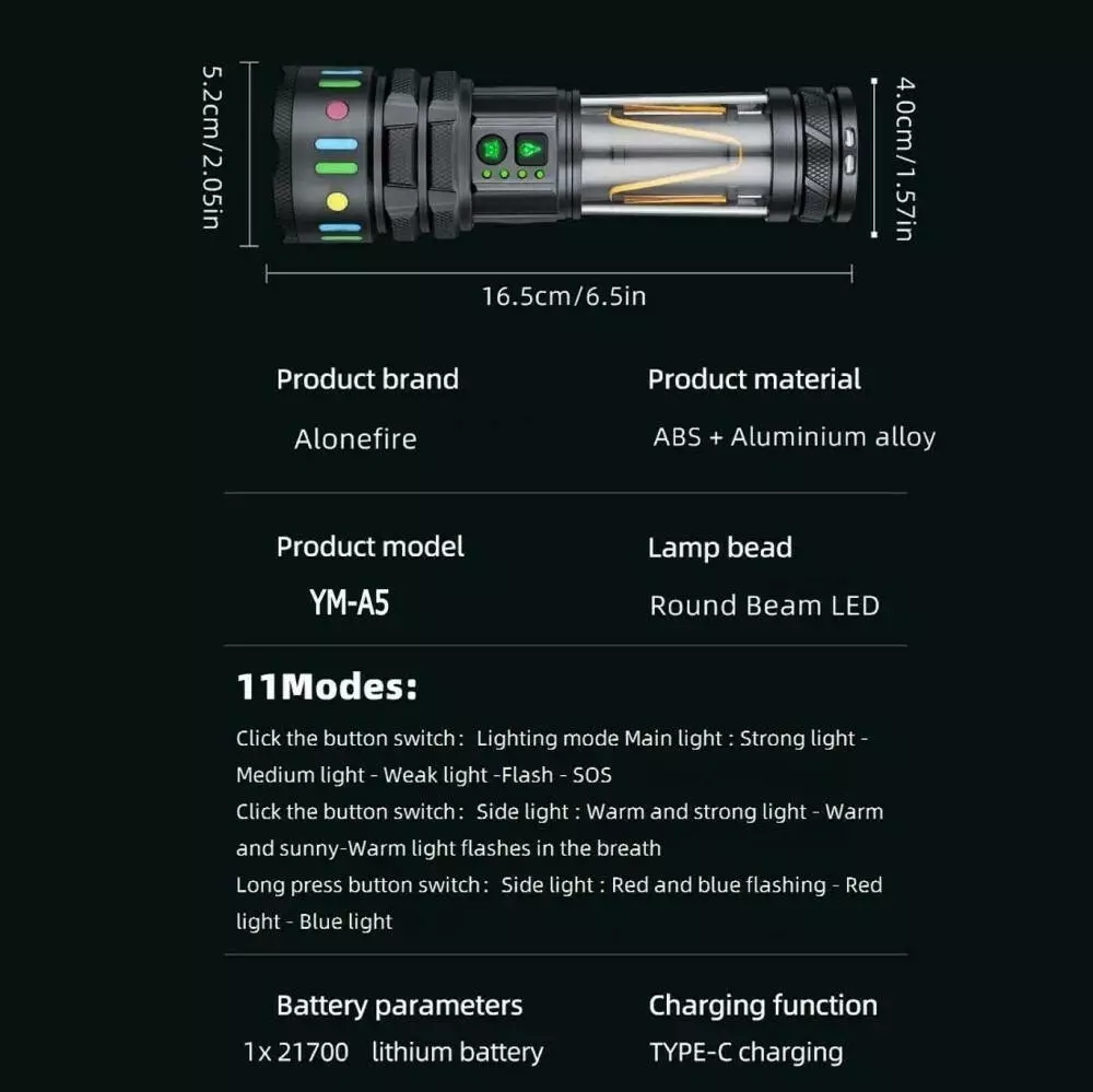 Ліхтар YEMAO YM-A5 TG 30W, 1x21700, Power Bank, ЗУ Type-C, zoom, функція лампи