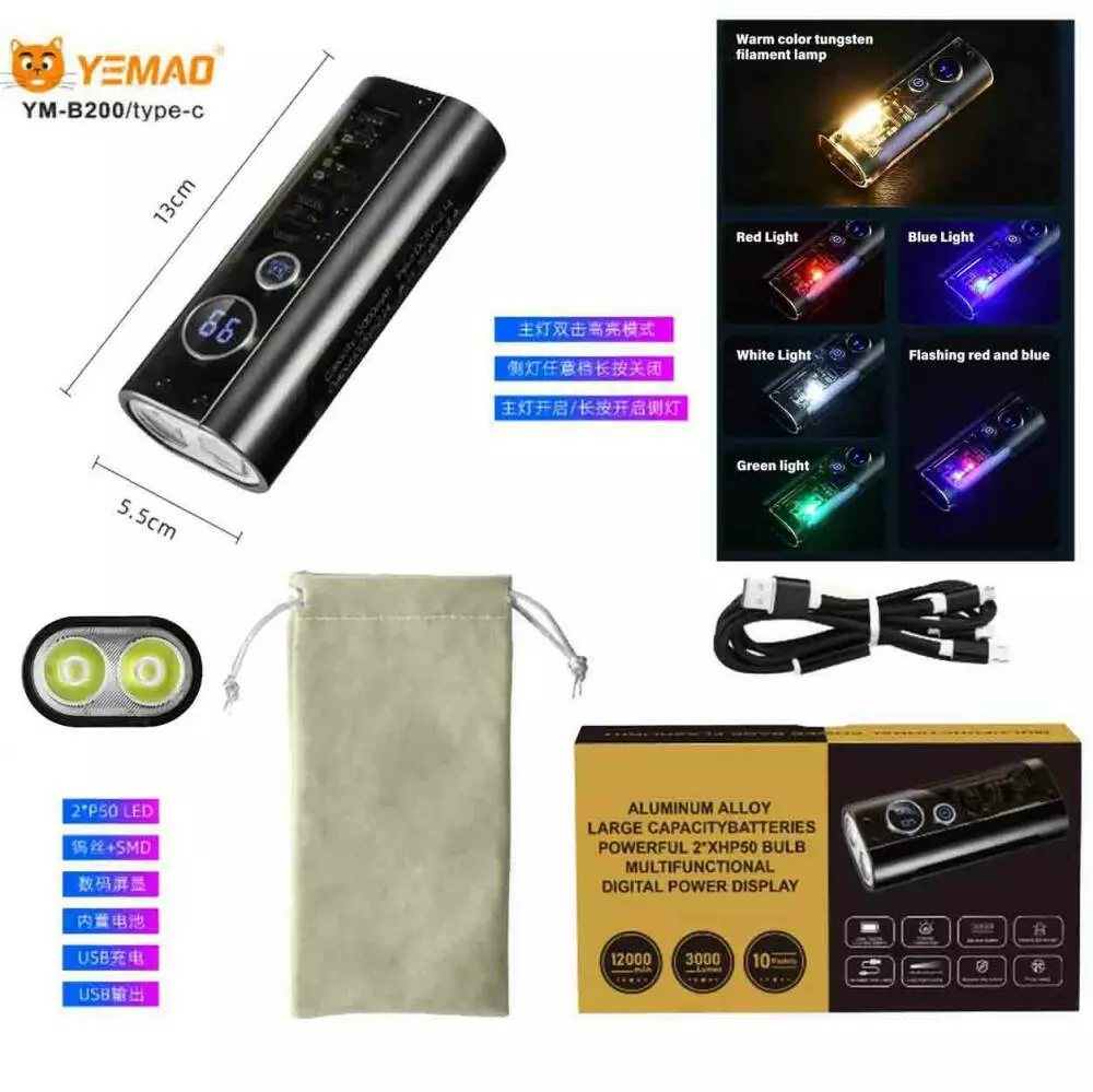 Ліхтар YEMAO YM-B200 2P50 LED+SMD(RGB), Li-Ion акумулятор, ЗУ Type-C, чохол