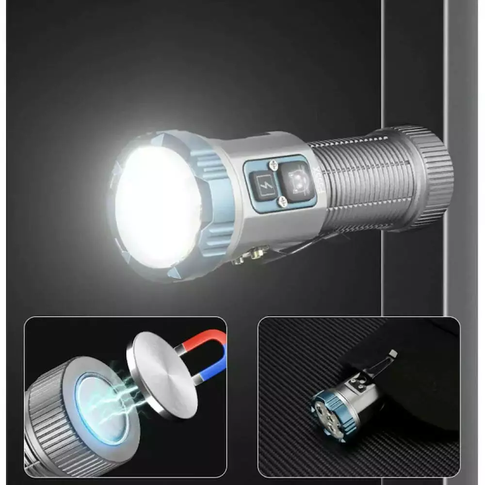 Додаткові характеристики: пилу та вологозахищений корпус, індикація заряду, магніт, дві флуоресцентні смужки, додаткова секція для різних акумуляторів